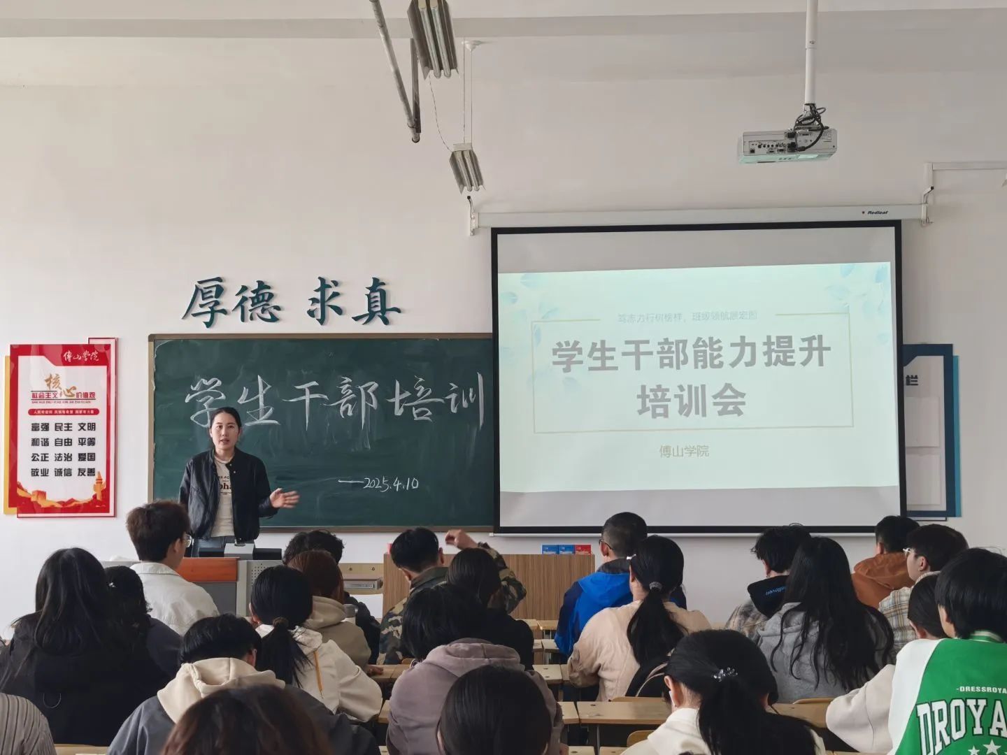 4月15日,首期培训开讲。公司分团委副书记吕文雁以“班团干部的职责任务与价值引领”为主题,展开深入浅出的讲解。她运用丰富的案例与详实的分析,深刻剖析了员工干部在校园生活与班级建设中的关键角色定位。着重强调班团骨干不仅要将服务意识深植于心,更要时刻彰显先锋模范担当精神,尤其在学风建设的持续推进、各类活动的高效组织等方面,切实发挥好不可或缺的纽带桥梁作用。她进一步指出,班团干部需精准做好 “上传下达” 工作,积极主动地搭建起师生之间顺畅沟通的稳固桥梁,确保信息传递及时、准确,为营造良好的教学与学习氛围贡献力量。