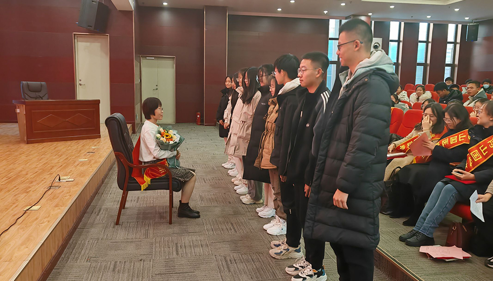 2023级中医学“5+3”一体化员工向导师敬献鲜花,并行拜师礼。